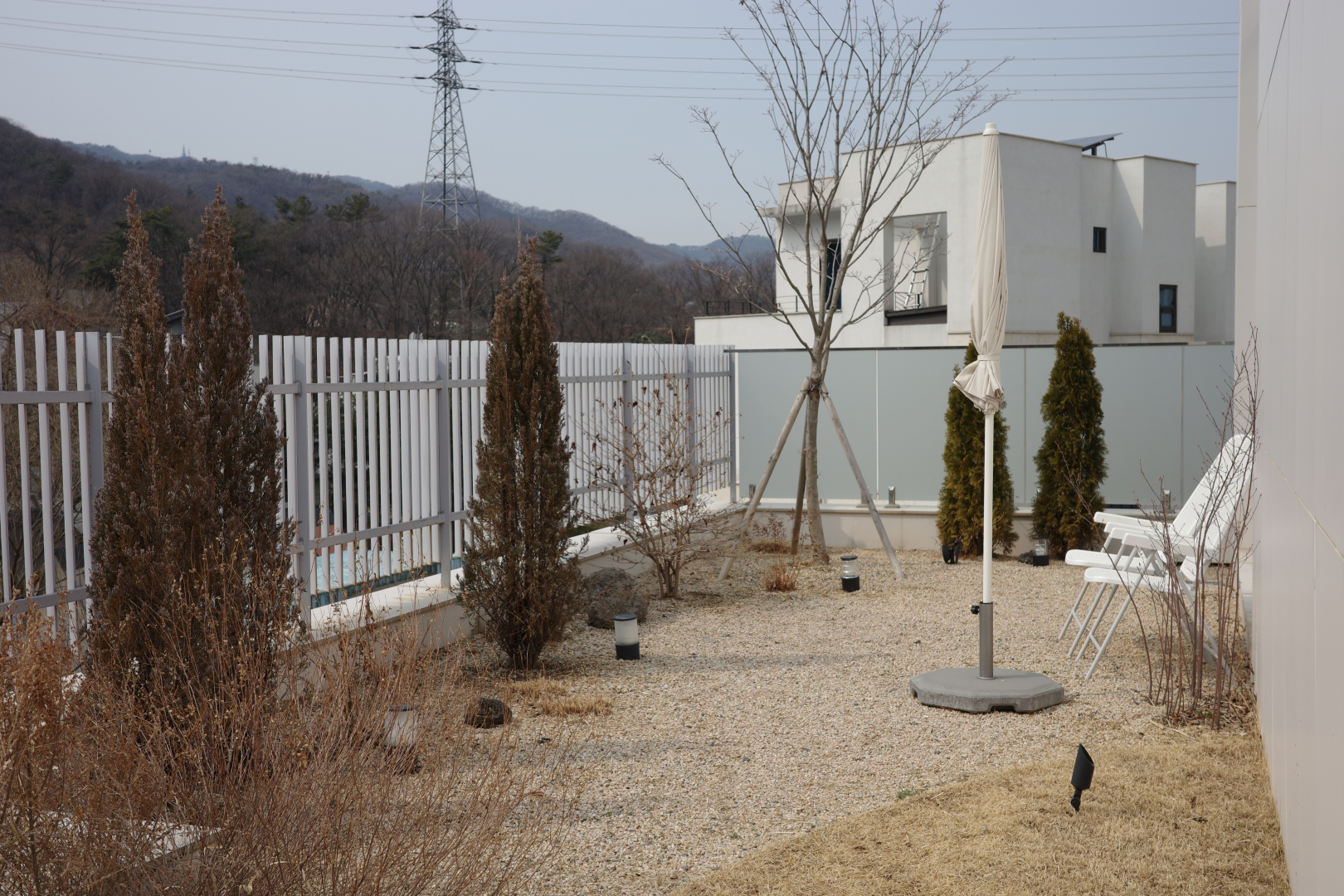 스튜디오 Gogi 고기는 지하 1층부터 지상 3층까지 총 84평 규모로, 층마다 완전히 다른 무드를 가진 다층 구조 단독주택 스튜디오입니다. 차고 진입의 1층 화강석 주방·다이닝, 더블 하이트 볼륨의 2층 리빙, 다크 그레이 캔틸레버 계단이 있는 지하층까지—하나의 공간에서 여러 씬을 소화할 수 있습니다. 잔디 마당과 파빌리온을 갖춘 외부 공간, 대형 폴딩 도어로 중정과 연결되는 실내까지 실내외 촬영이 모두 가능합니다.